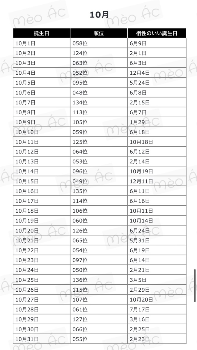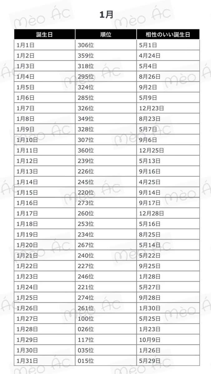 Bên Nhật vừa công bố bảng xếp hạng mức độ may mắn của từng ngày sinh trong năm 2026: 誕生日運勢ランキング. Năm nay toi đứng thứ 107 văng khỏi top 100 òi bùn ghê. Bảng tra này theo lịch 12 tháng, toi đi tìm về cho mọi người dễ tra nhé. Mấy trang khác cho bảng theo số thứ tự may mắn 365 ngày tìm mún lòi con mắt mà chưa thấy đc ngày sinh của mình.